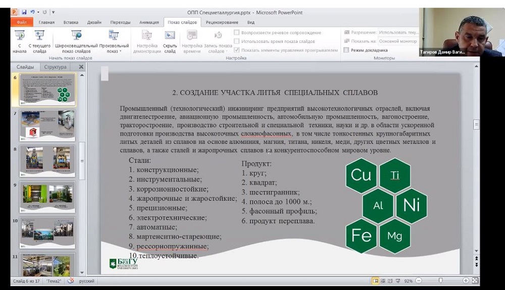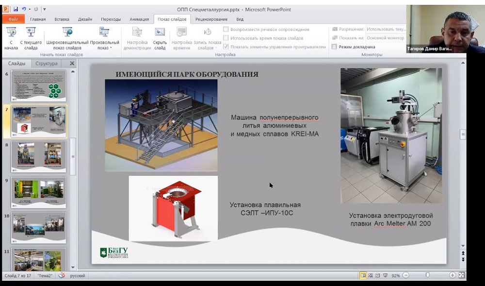 Концепцию создания опытно-производственного участка специальной металлургии и инжиниринга изложил Директор центра коллективного пользования Дамир Тагиров.