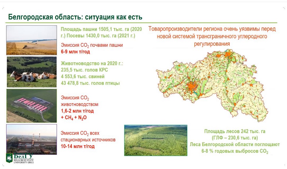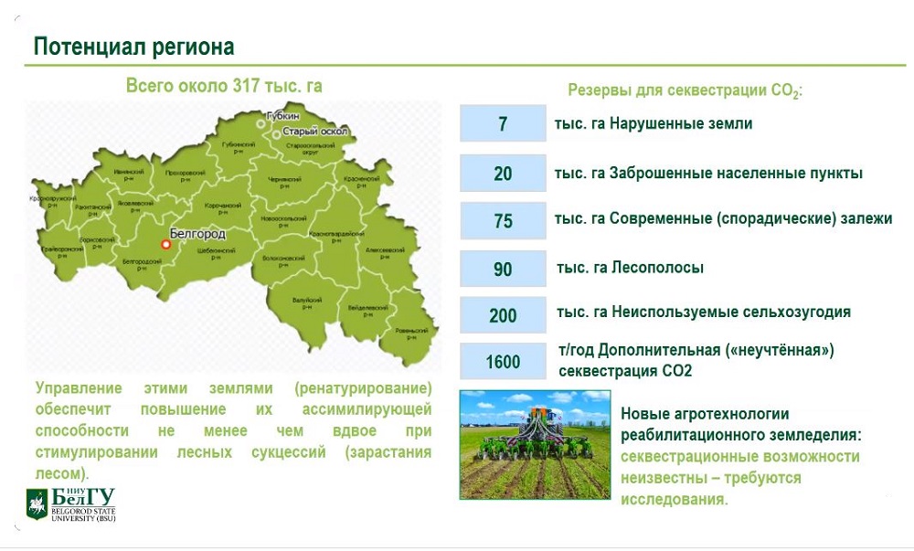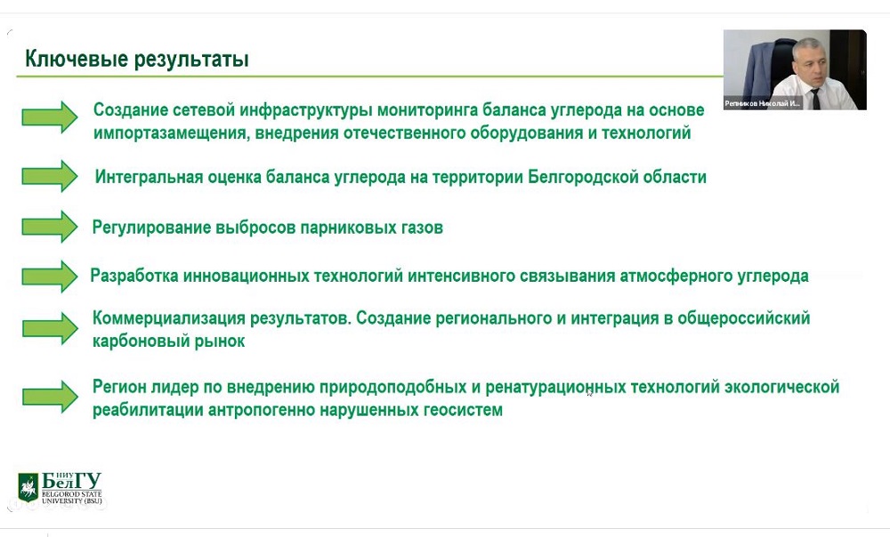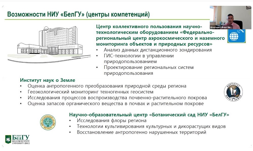 Директор института наук о Земле Игнат Игнатенко и доцент кафедры природопользования и земельного кадастра Павел Голеусов рассказали участникам встречи о проектах, направленных на создание в Белгородской области карбоновых полигонов для контроля за выбросами парниковых газов, договорённость о совместной реализации которых достигнута между НИУ «БелГУ» и МАК «ВЫМПЕЛ».