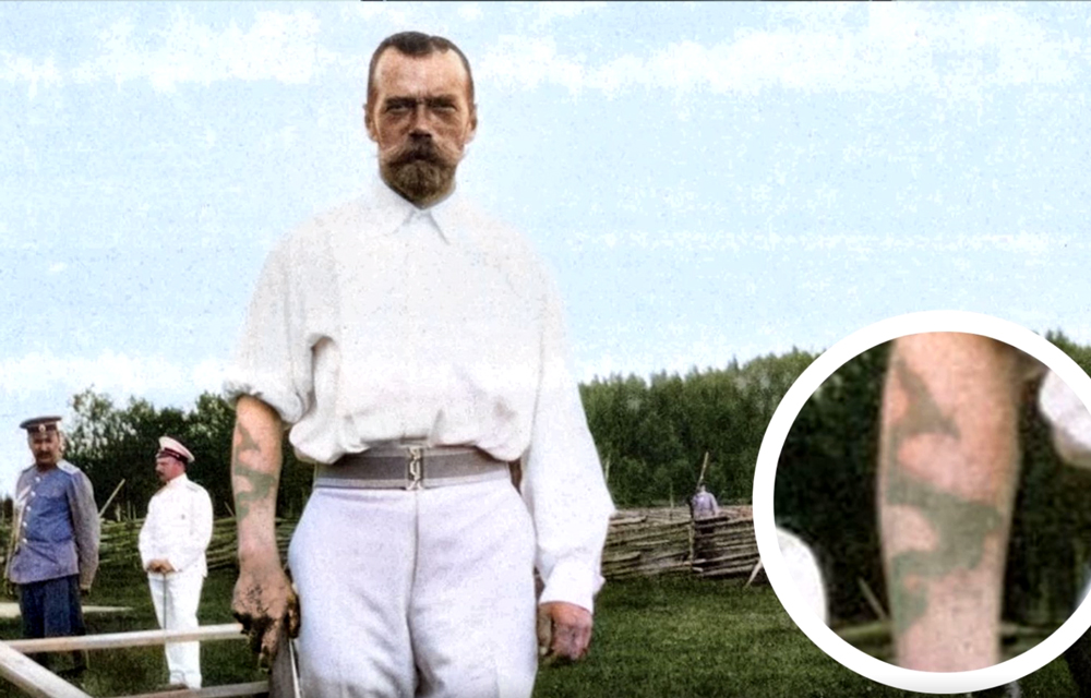 – Пётр Первый ввёл татуировку в армии, – рассказал Сергей Прокопенко. – Каждому солдату русской армии на запястье наносили крест с помощью надреза и пороха и индивидуальный номер иглой.