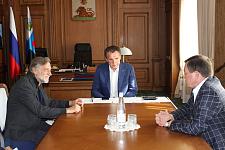 Состоялась рабочая встреча ректора НИУ «БелГУ», профессора Олега Полухина с врио губернатора Белгородской области Вячеславом Гладковым, участие в которой приняли профессор Кардифского университета (Великобритания) Владимир Бухман и директор НИИ Фармакологии живых систем НИУ «БелГУ», профессор Михаил Покровский.