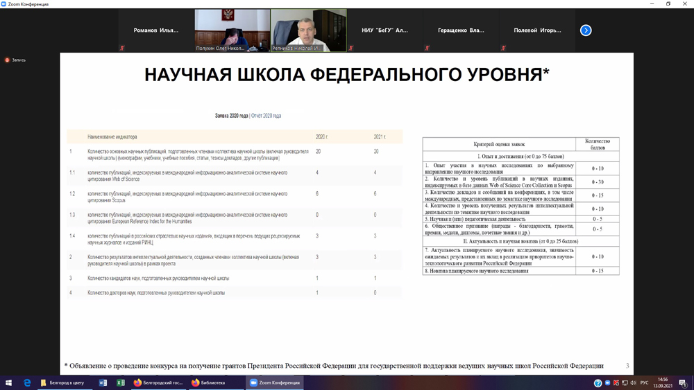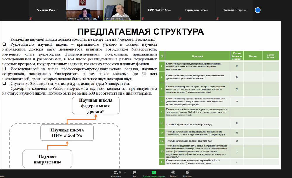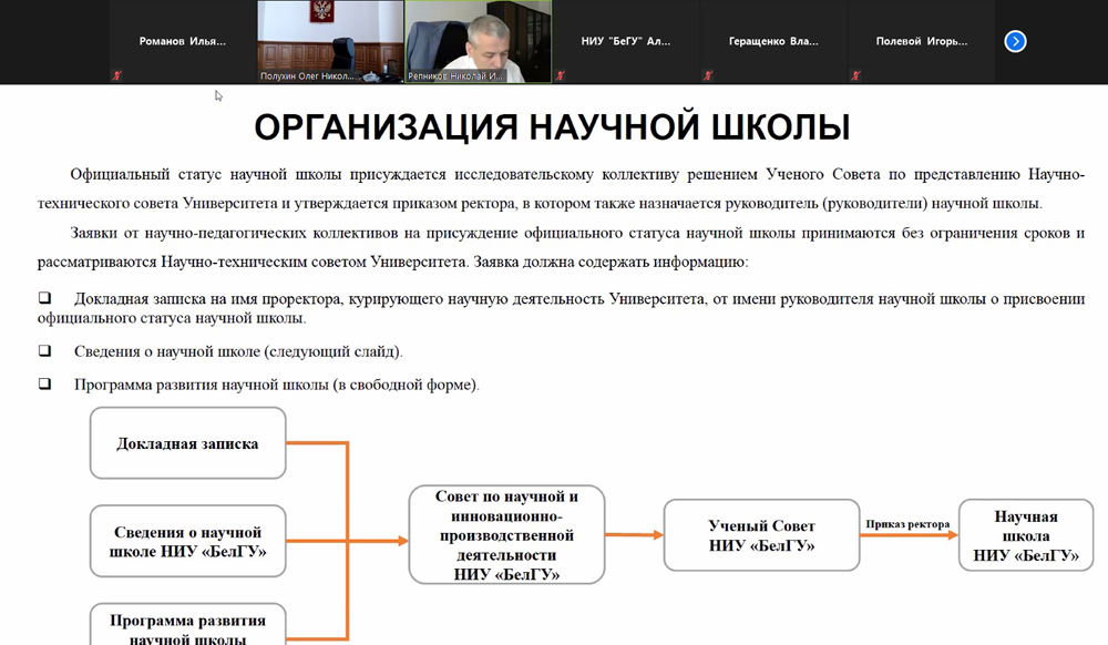 Структуру и критерии формирования научных школ обсудили на заседании совета по научной и инновационно-производственной деятельности НИУ «БелГУ»