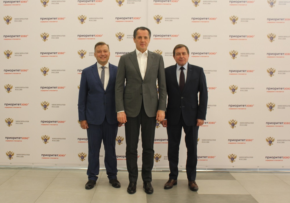 Врио губернатора Белгородской области Вячеслав Гладков, ректор Белгородского государственного национального исследовательского университета профессор Олег Полухин и руководитель объединённого центра генетических технологий НИУ «БелГУ» Алексей Дейкин представили комиссии Минобрнауки России десятилетнюю программу развития вуза в рамках конкурса «Приоритет-2030»