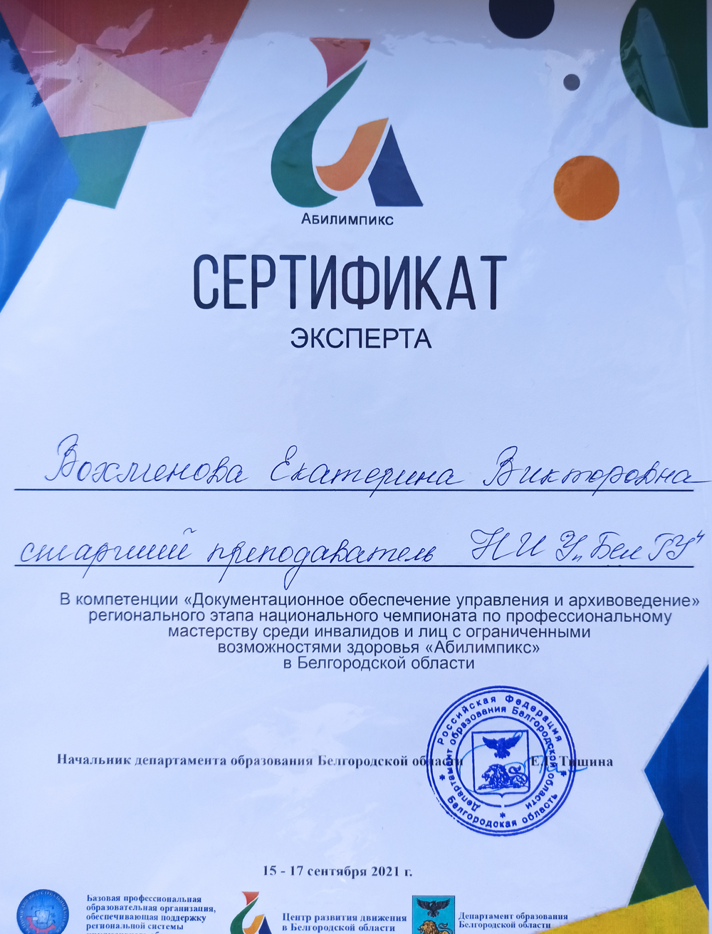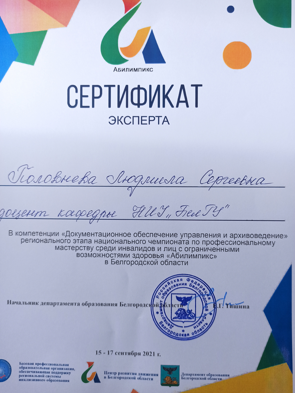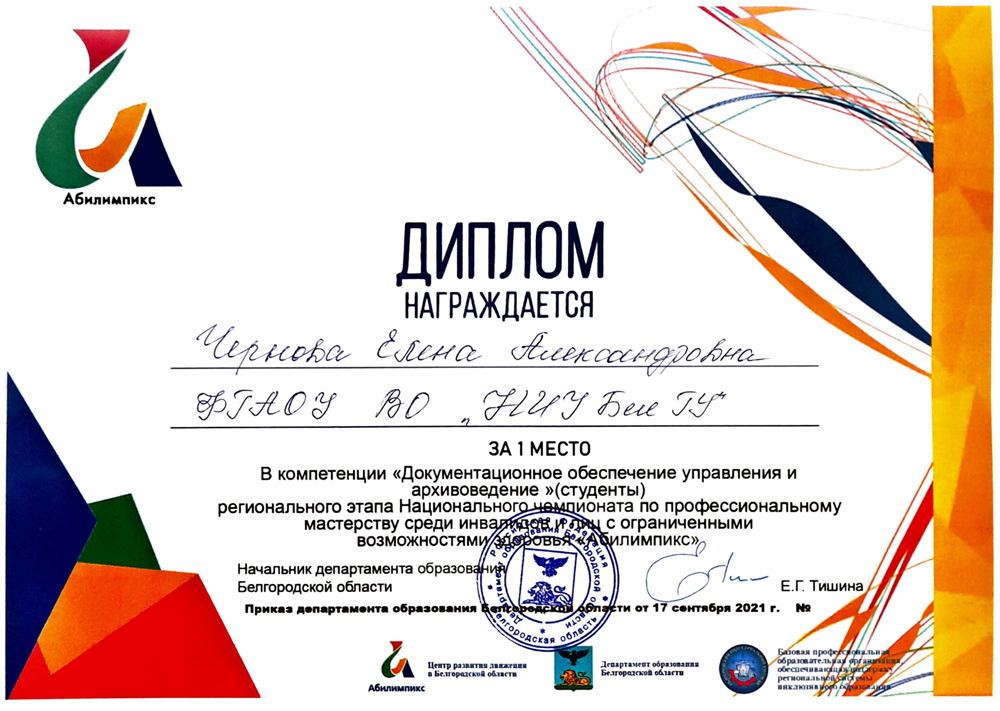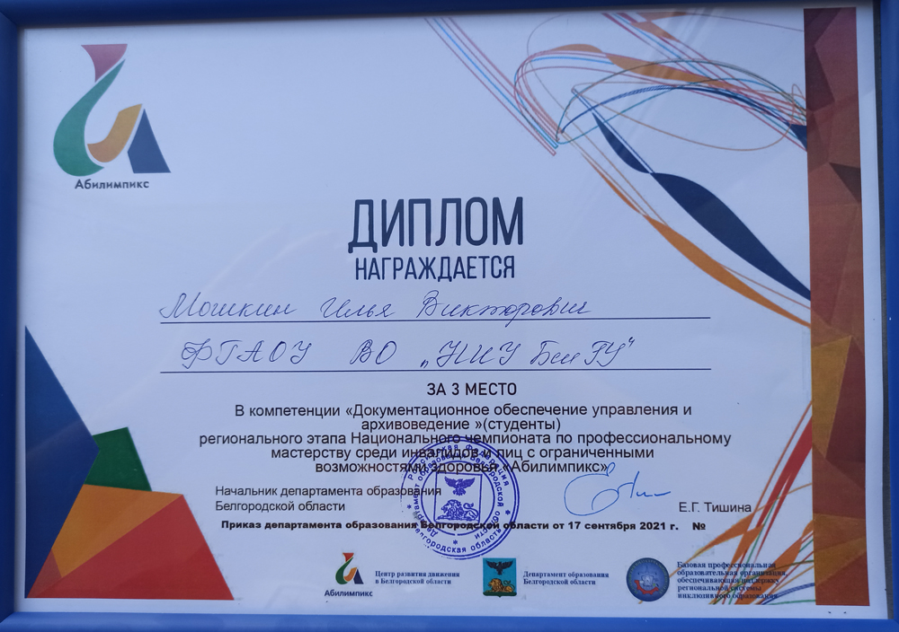 В 2021 году площадкой для проведения регионального этапа национального чемпионата «Абилимпикс» по компетенции «Документационное обеспечение управления и архивоведение» стал Белгородский педагогический колледж.