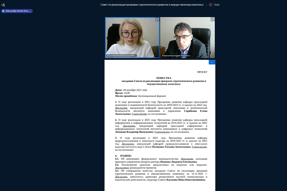 Состоялось очередное заседание совета по реализации программ стратегического развития и имущественному комплексу НИУ «БелГУ»