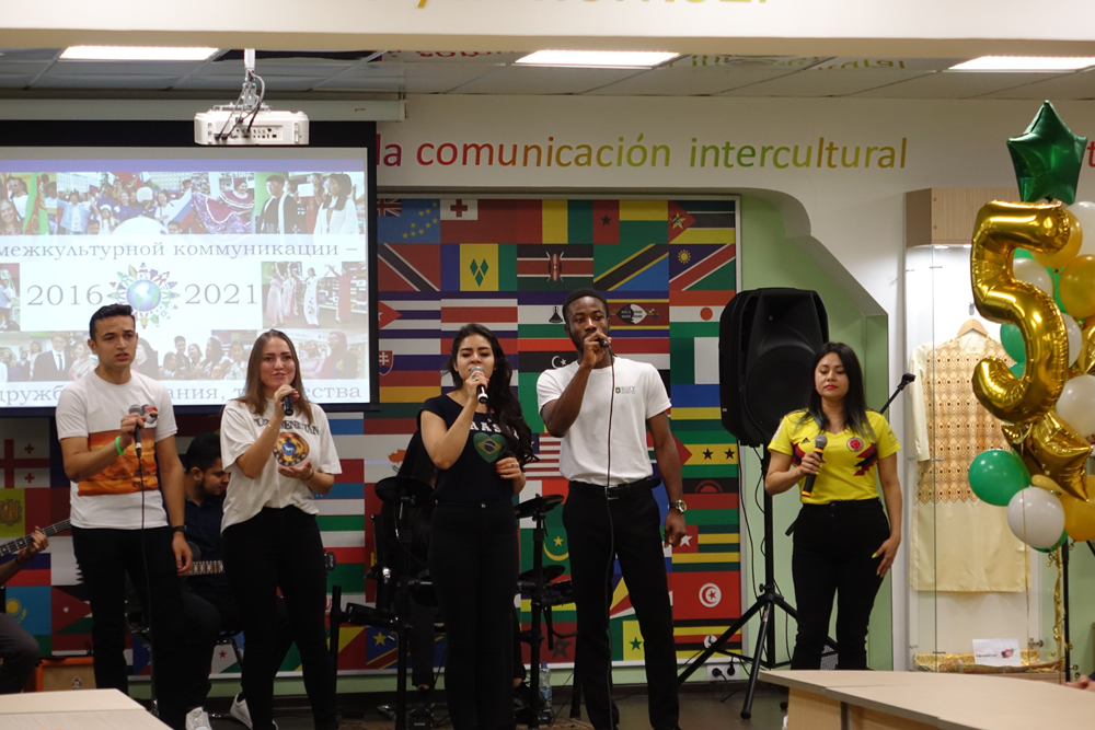 Завершилось праздничное мероприятие выступлением интернационального музыкального коллектива (Эквадор, Колумбия, Туркменистан, Того, Египет, Бразилия, Гаити) с попурри песен на русском и английском языке «Мы дети мира» и «Hello» с демонстрацией поздравительных видео-открыток.