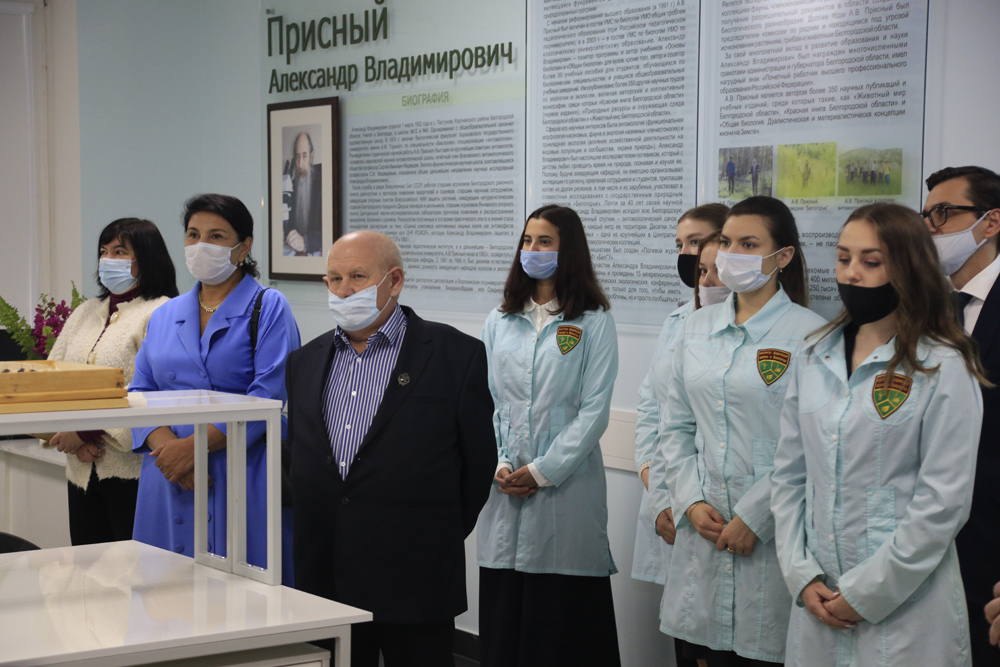 Открытие аудитории имени профессора Александра Владимировича Присного – выдающегося учёного-биолога и популяризатора науки – состоялось в зале экспозиционно-выставочного центра «Природа Белогорья». Гостями мероприятия стали: ректор НИУ «БелГУ» Олег Полухин, заслуженный учитель Российской Федерации, директор Белгородской специальной коррекционной школы-интерната №23 Александр Годин, представители ректората, директора институтов и студенты.