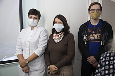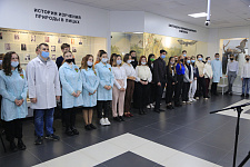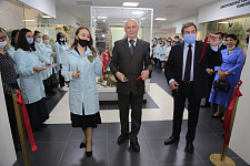 Открыли аудиторию, перерезав символическую ленту, ректор университета, доктор политических наук, профессор Олег Полухин, и.о. директора института фармации, химии и биологии, доктор биологических наук Андрей Присный, победитель конкурса «УМНИК», студент 3 курса Данил Маклаков и студентка 4 курса Мария Болясникова.