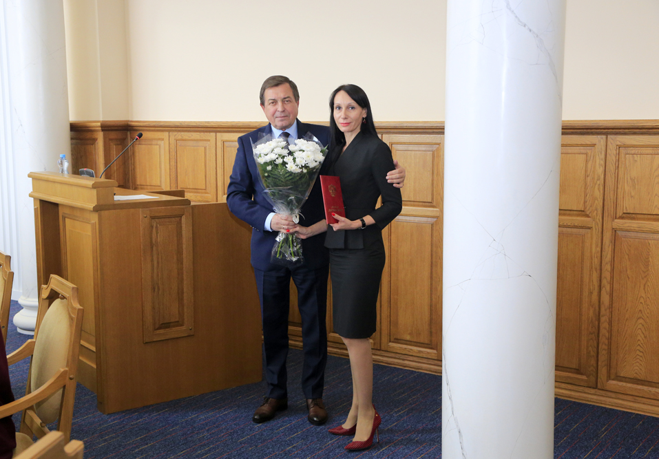 Заседание учёного совета вуза началось с приятного момента: вручения дипломов о присвоении степени докторов и кандидатов наук. Ректор НИУ «БелГУ», профессор Олег Полухин вручил диплом доктора исторических наук заведующей кафедрой общей истории Елене Литовченко, диплом доктора юридических наук доценту кафедры конституционного и международного права Алевтине Новиковой, диплом кандидата филологических наук старшему преподавателю кафедры русского языка и русской литературы Гаяне Мальцевой. Олег Николаевич поздравил учёных с заслуженным признанием их труда и пожелал учёным новых достижений на благо университета и российской науки.