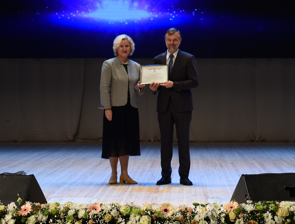Награды удостоен декан историко-филологического факультета педагогического института Андрей Папков, которому Благодарственное письмо администрации губернатора Белгородской области за многолетний добросовестный труд, высокий профессионализм, значительный вклад в развитие высшего образования на территории Белгородской области вручила начальник управления науки региона Екатерина Журавлёва.