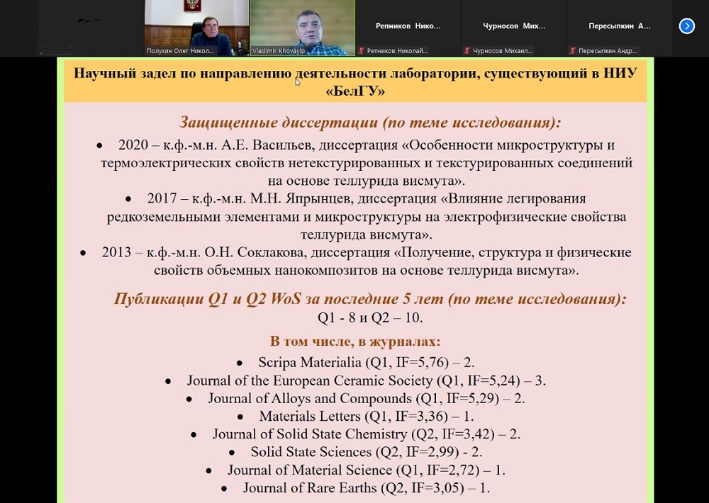 Создание лаборатории термоэлектрических материалов и структуры обсудили на заседании совета по научной и инновационно-производственной деятельности НИУ «БелГУ»