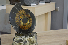 Геолого-минералогический музей имени А.Н. Петина НИУ «БелГУ» пополнился эксклюзивным образцом аммонита с симбирцитом на кальцитовой подставке