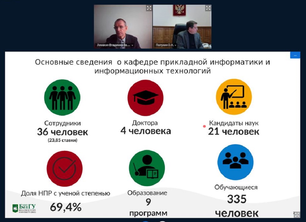 Подводя промежуточные итоги работы кафедры прикладной информатики и информационных технологий института инженерных и цифровых технологий НИУ «БелГУ» в 2021 году, завкафедрой Владимир Ломакин акцентировал внимание на практикоориентированности образовательных программ, реализуемых в тесном сотрудничестве с потенциальными работодателями и стратегическими партнёрами, а также профориентационной работе, от которой во многом зависит формирование кадрового потенциала IT-специалистов как для вуза, так и для всех отраслей экономики региона и страны в целом.