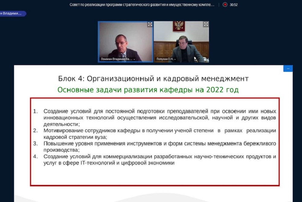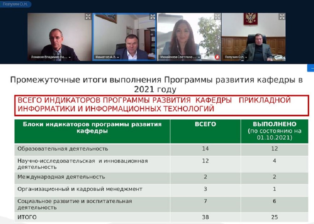 Промежуточные итоги и перспективы развития кафедры прикладной информатики и информационных технологий рассмотрели на заседании совета по реализации программ стратегического развития и имущественному комплексу вуза