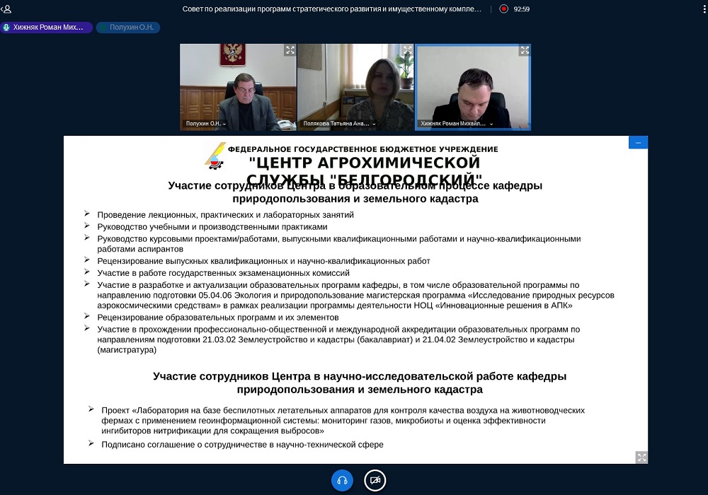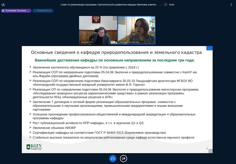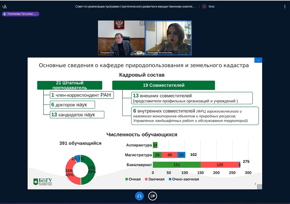 Вопрос развития кафедры природопользования и земельного кадастра рассмотрен на совете по реализации программ стратегического развития НИУ «БелГУ»