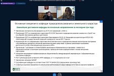 О ходе реализации в 2021 году Программы развития кафедры природопользования и земельного кадастра на 2019-2022 гг. и задачах на 2022 год рассказала и.о. заведующего кафедрой природопользования и земельного кадастра Татьяна Полякова. Говоря о достижениях кафедры, Татьяна Анатольевна отметила увеличение контингента обучающихся на 25%, успешное прохождение государственной аккредитации во всем направлениям подготовки, развитие сетевой формы реализации образовательных программ с организациями-партнёрами, высокую публикационную активность профессорско-преподавательского состава в высокорейтинговых журналах. Особо отметила Татьяна Полякова вклад преподавателей кафедры в разработку образовательных программ по тематике НОЦ «Инновационные решения в АПК»: в 2021 году была актуализирована программа «Исследование природных ресурсов аэрокосмическими средствами». В международной деятельности также достигнуты значительные результаты: заключен договор о сетевой форме реализации образовательной программы магистратуры совместно с Самаркандским госуниверситетом, успешно реализуется совместная образовательная программа с КазНУ им. аль-Фараби (с получением двойных дипломов), развивается академическая мобильность с Карагандинским университетом.