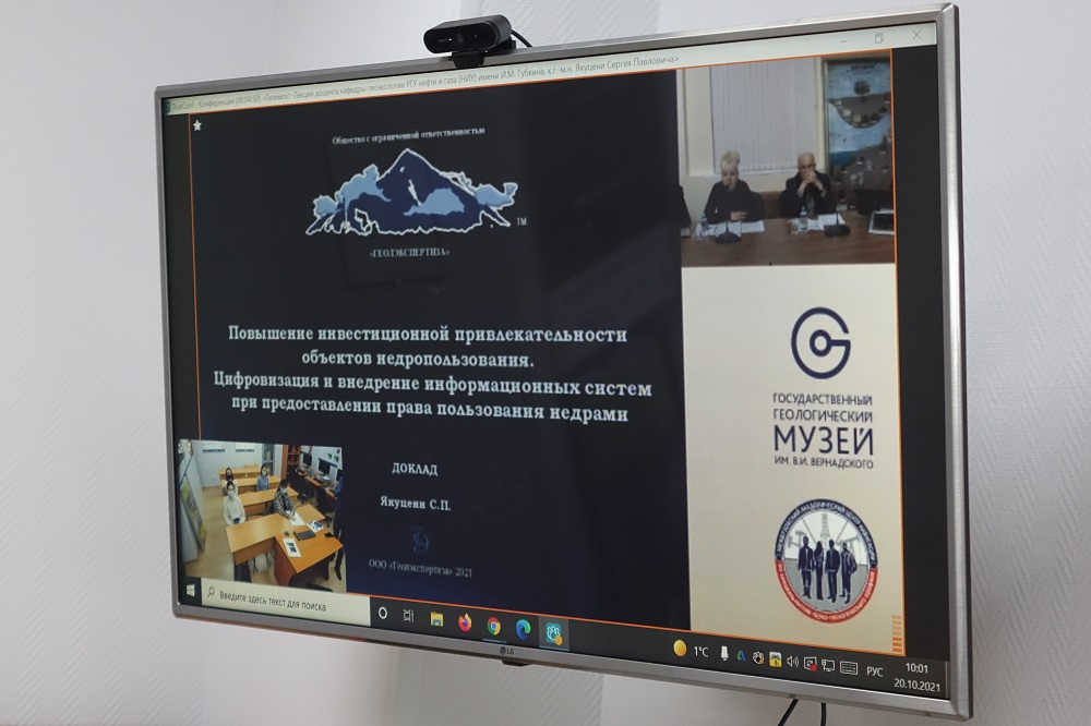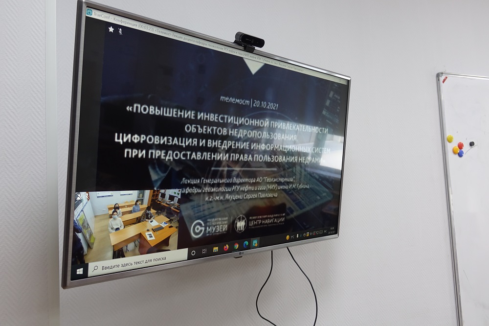 В ходе телемоста состоялась трансляция лекции генерального директора АО «Геолэкспертиза», доцента кафедры геоэкологии РГУ нефти и газа (НИУ) имени И.М. Губкина, кандидата геолого-минералогических наук Сергея Якуцени «Цифровизация и внедрение информационных систем при предоставлении права пользования недрами».