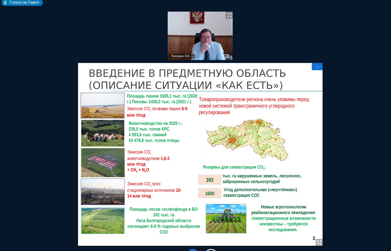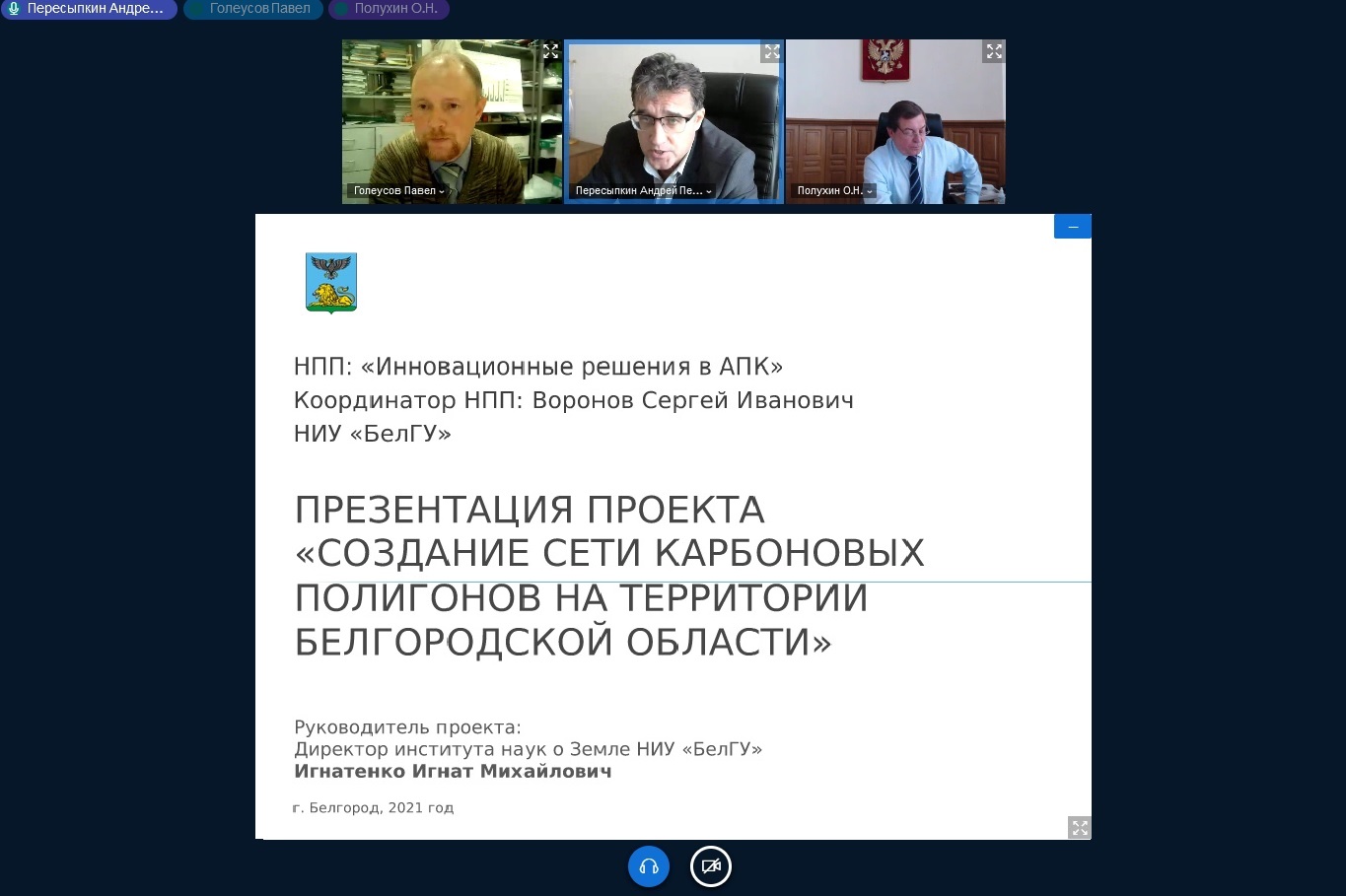 На заседании Координационного совета по управлению деятельностью НИУ «БелГУ» в рамках НОЦ «Инновационные решения в АПК» обсуждены перспективы развития сети карбоновых полигонов в Белгородской области в соответствии с реализацией проектов программы "Приоритет-2030"