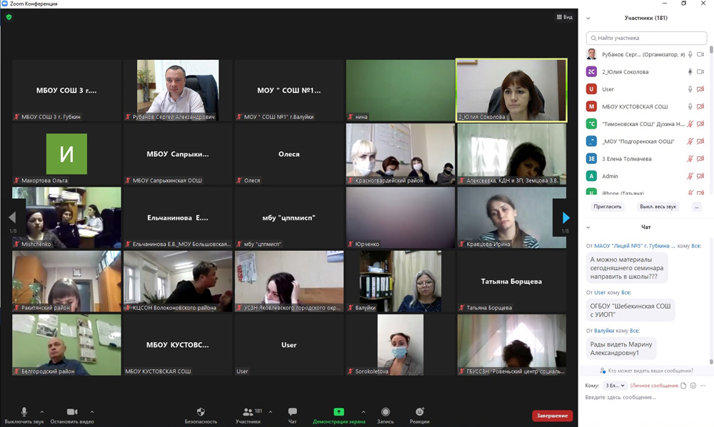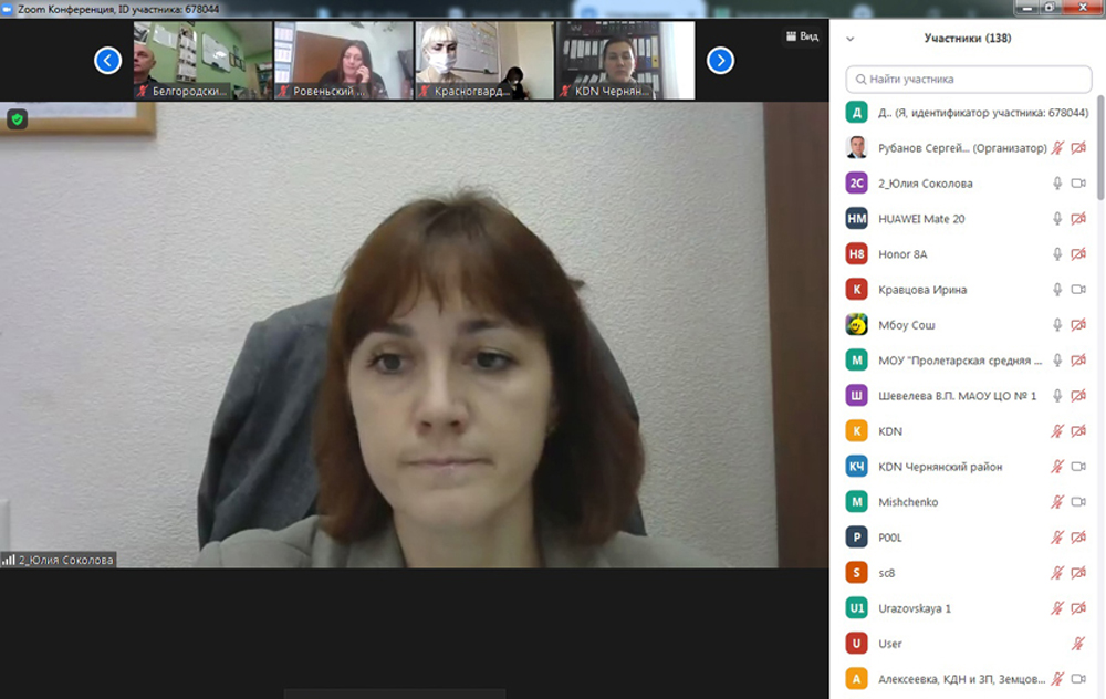 Открыла онлайн-конференцию ответственный секретарь комиссии по делам несовершеннолетних и защите их прав области — консультант отдела профилактики правонарушений управления региональной безопасности администрации губернатора Белгородской области Юлия Соколова. Юлия Серегеевна рассказала об опыте применения медиативных технологий в деятельности территориальных комиссий по делам несовершеннолетних и защите их прав.