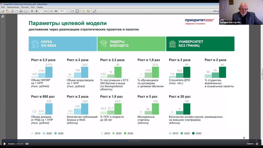 Директор института экономики и управления НИУ «БелГУ» Виктор Захаров представил участникам Конгресса Программу развития университета на 2021-2030 годы в рамках Программы стратегического академического лидерства «Приоритет-2030».