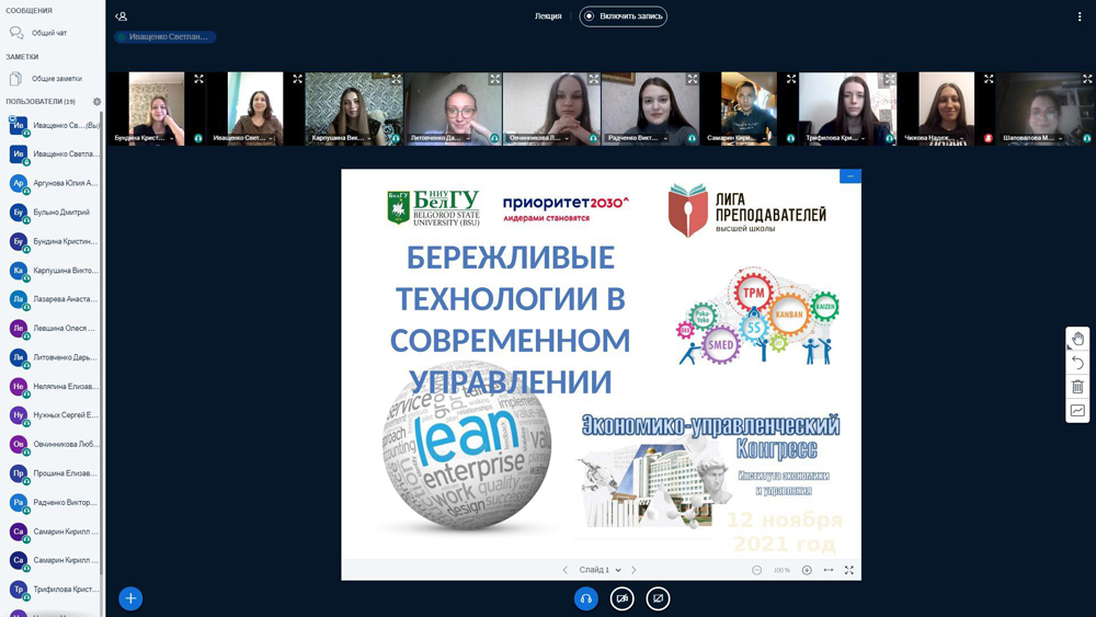 Научное онлайн-мероприятие, организатором которого выступил институт экономики и управления НИУ «БелГУ», посвятили актуальным вопросам развития практик социальных и управленческих систем в XXI веке