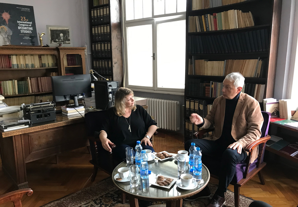 Встреча с директором Института византинистики Сербской Академии наук и искусств профессором Срджаном Пириватричем проходила в здании Академии наук и искусств, в кабинете основателя сербских византологических штудий – выдающегося русско-сербского византиниста Георгия Александровича Острогорского, покинувшего Россию в годы революции.