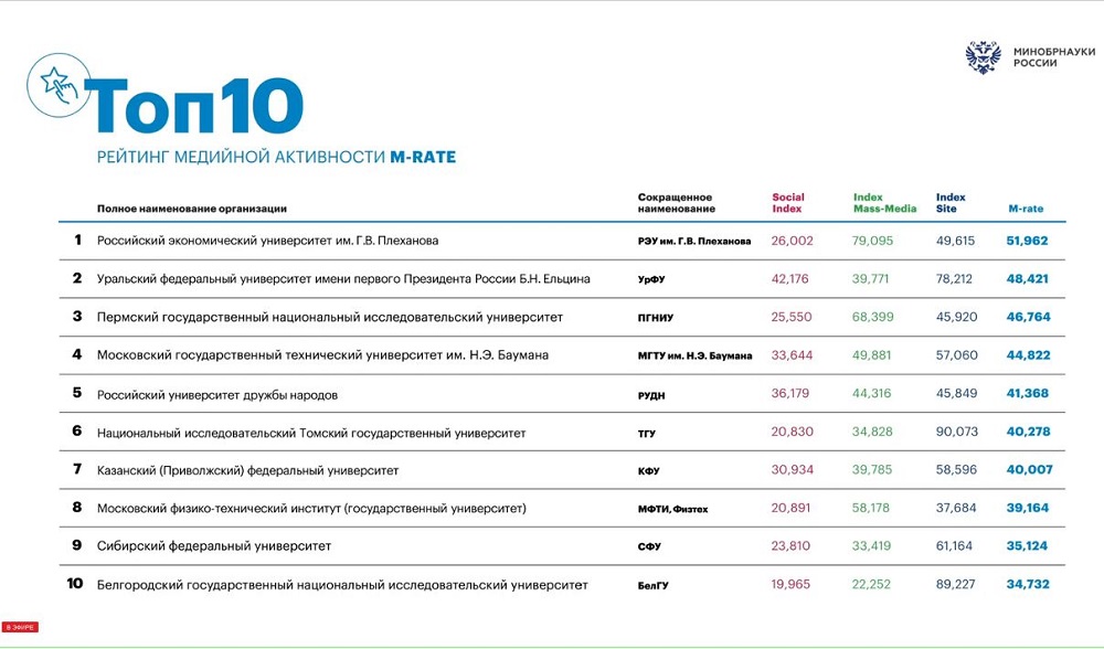 НИУ «БелГУ» – в ТОП-10 рейтинга медиаактивности вузов, подведомственных Минобрнауки РФ