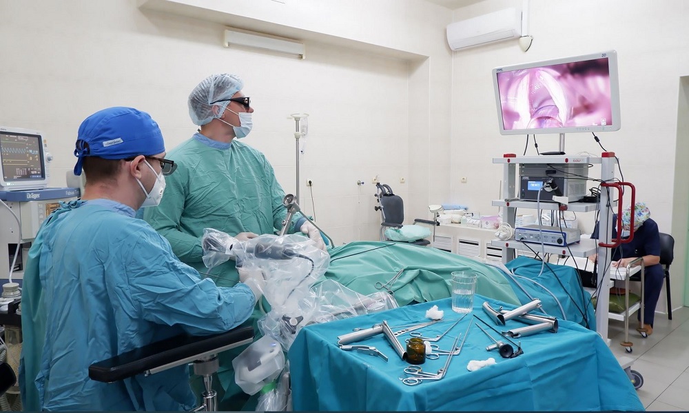 – Во-первых, это удобное положение рук врача при вмешательстве: мне не надо изворачиваться под неестественным углом, чтобы добраться до операционного поля – удобный джойстик обеспечивает точность движений и перемещений прибора. Во-вторых, – совершенно нереальное качество изображения. Врач видит каждую анатомическую структуру такой, какая она есть на самом деле, в естественном пространстве. Более того, система позволяет оптимизировать рабочий и учебный процесс – операционная бригада или ординаторы могут наблюдать за происходящим с тем же качеством изображения, что и хирург. Понимание расположения структур ткани в пространстве, глубины раны даёт совершенно иное ощущение, – констатировал Владимир Шутов.