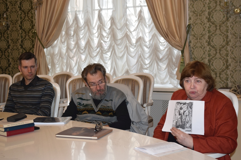 Встреча традиционно прошла в библиотеке-музее Н.Н. Страхова. Гостем мероприятия стала заведующая Музеем-мастерской заслуженного художника России, белгородского графика Станислава Косенкова – Анна Косенкова, которая рассказала о работах знаменитого художника и представила визуальные материалы – копии работ, посвященных роману Достоевского «Преступление и наказание».