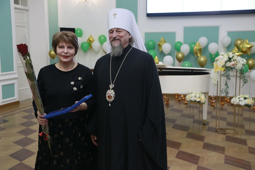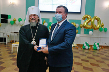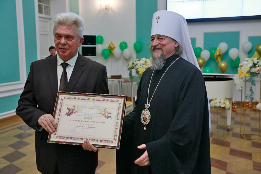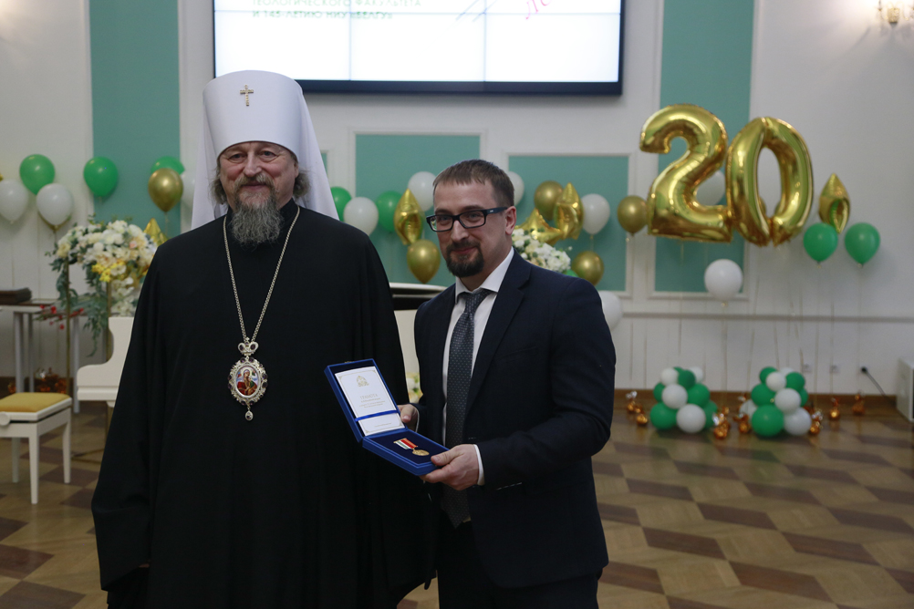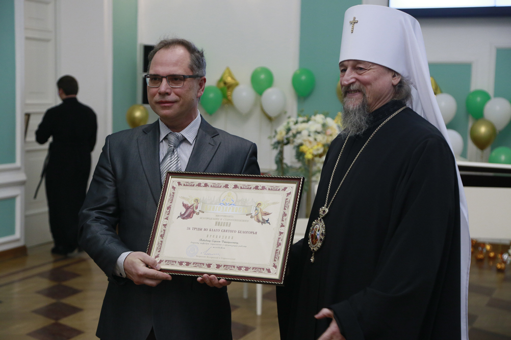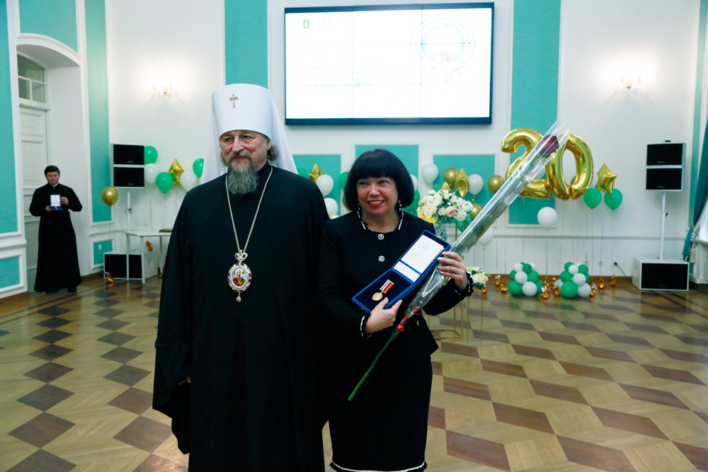 С тёплыми словами поздравления выступил митрополит Белгородский и Старооскольский Иоанн и вручил от Белгородской митрополии заслуженные награды. Так, юбилейной медали Священномученика Никодима I степени удостоена проректор по воспитательной работе и молодёжной политике НИУ «БелГУ» Светлана Острикова, медали III степени – проректор по образовательной деятельности НИУ «БелГУ» Александр Маматов и доцент кафедры социальной работы, руководитель социально-теологического факультета имени митрополита Московского и Коломенского Макария (Булгакова) Марина Поленова. Медали Святителя Иоасафа II степени удостоены: директор института общественных наук и массовых коммуникаций, профессор кафедры философии и теологии НИУ «БелГУ» Сергей Борисов и заведующая кафедрой философии и теологии института общественных наук и массовых коммуникаций НИУ «БелГУ», руководитель Духовно-просветительского центра имени митрополита Московского и Коломенского Макария (Булгакова) Тамара Липич. Лучшим представителям факультета были вручены архиерейские грамоты.