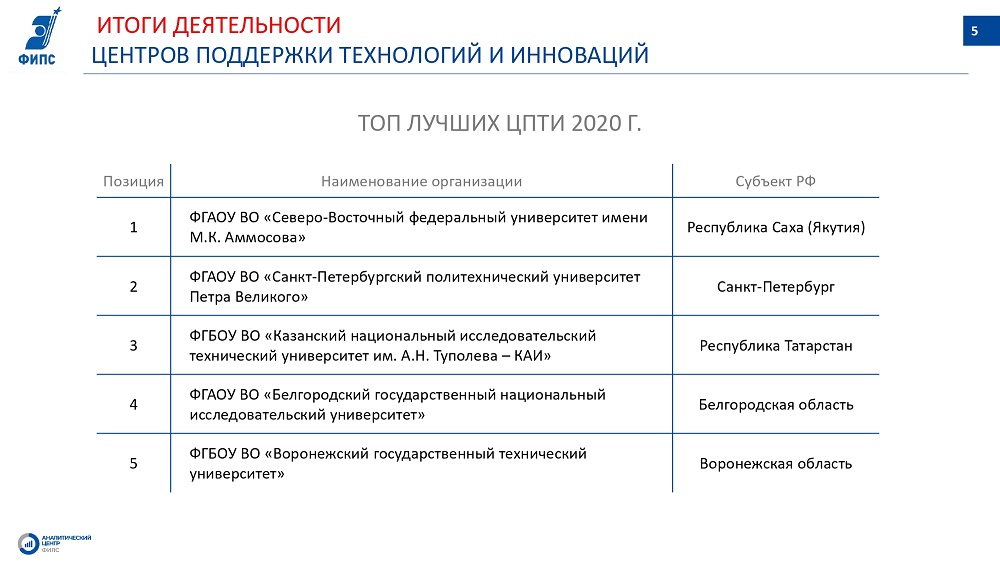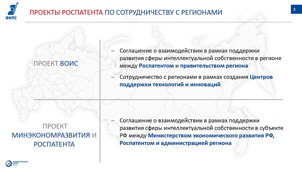 Руководители регионов и органов исполнительной власти, представители институтов развития (Агентство по технологическому развитию, Фонд «Сколково») представили опыт по развитию инновационной деятельности и трансферу технологий, реализуемый в субъектах РФ. Ключевыми темами обсуждения стали интеграция, в рамках новой экосистемы цифровой экономики патентной аналитики и её применение для задач региона (на примере Татарстана, Мордовии, Карелии, Тульской области). Были рассмотрены практики по повышению эффективности трансфера и скаутинга технологий с использованием патентной аналитики как инструмента достижения данных целей.