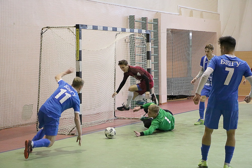 Универсиада объединила сильнейших спортсменов из числа студентов всех вузов Белгородской области. В соревнованиях приняли участие пять команд: БелЮИ МВД России имени И.Д. Путилина, БУКЭП, БГТУ имени В.Г. Шухова, БелГАУ имени В.Я. Горина и НИУ «БелГУ». Игры проводились по круговой системе. Команда НИУ «БелГУ» и БелГАУ имени В.Я. Горина подошли к финальной игре без поражений. Завершающий поединок получился напряжённым и закончился вничью– 2:2, однако за счёт лучшей разницы мячей первое место по итогам турнира досталось команде Белгородского госуниверситета, а тройку лучших замкнули представители БГТУ им. В.Г. Шухова.
