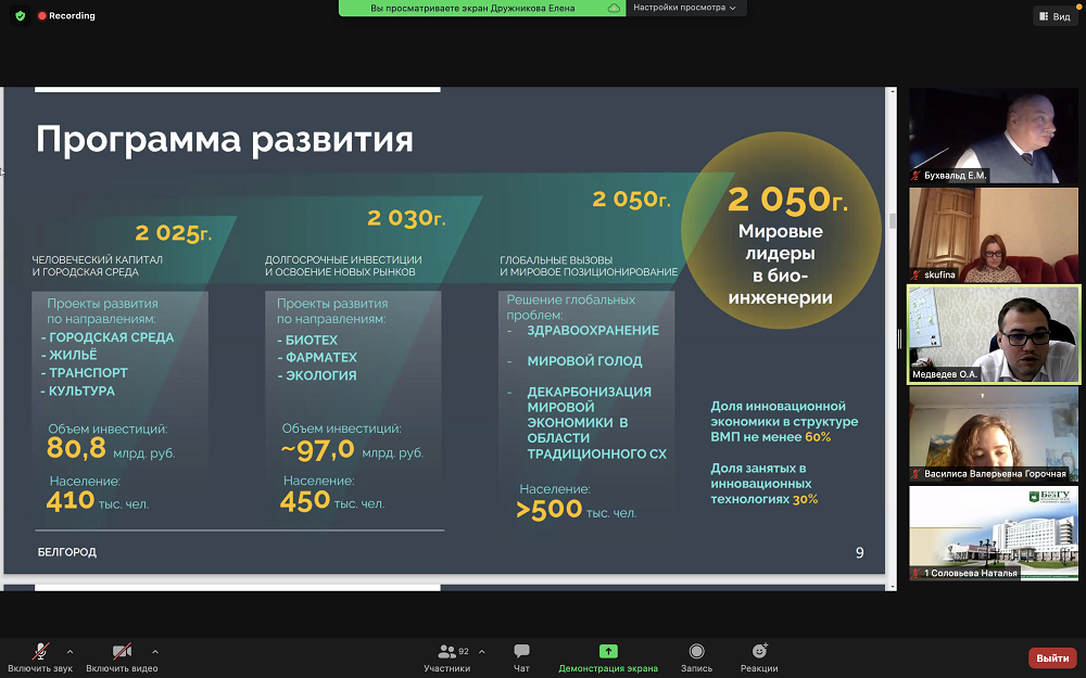 В работе онлайн-конференции участвовали около ста учёных из России, Белоруссии, Германии, Узбекистана и других зарубежных стран. С приветственным словом к собравшимся обратился директор института экономики и управления НИУ «БелГУ» Виктор Захаров и пожелал плодотворной работы.