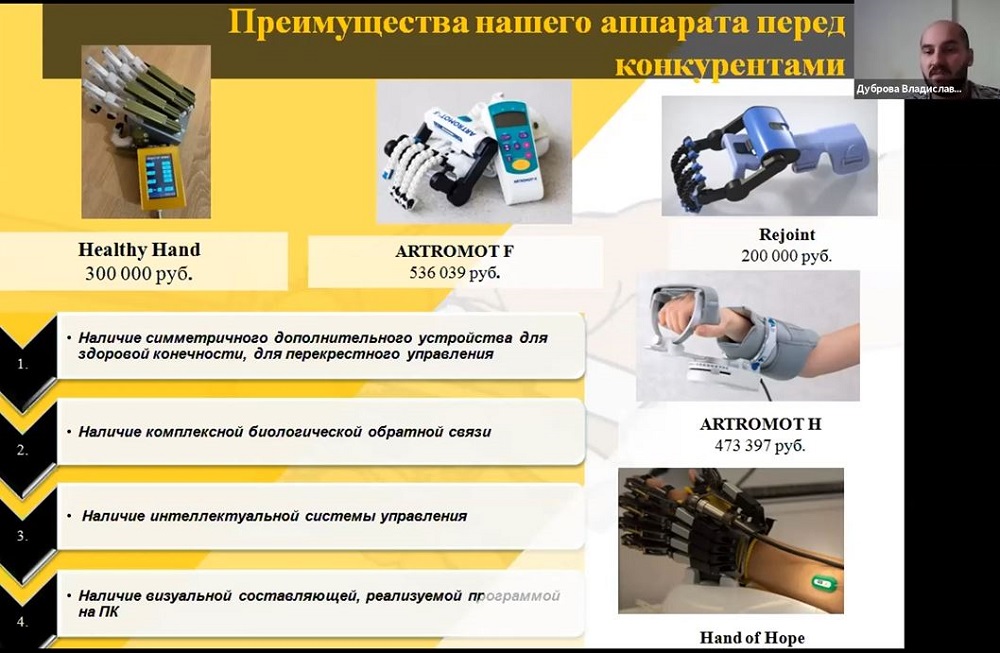 – Суть нашего проекта – работа с людьми, у которых было острое нарушение мозгового кровообращения, перенесённые инсульты. У них нарушается двигательная активность кисти, в том числе мелкая моторика, и с помощью данного АПК мы занимаемся восстановлением, – прокомментировал студент медицинского института НИУ «БелГУ» Владислав Дуброва, отвечающий за медицинскую часть проекта.