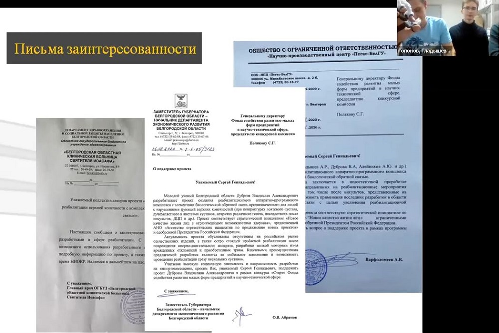 Проект молодых белгородских учёных по разработке аппаратно-программного комплекса для реабилитации кисти руки признан лучшим в номинации «Реабилитация» в конкурсе «Неограниченные возможности», ориентированном на создание инновационных проектов для улучшения качества жизни людей с ограниченными возможностями здоровья.