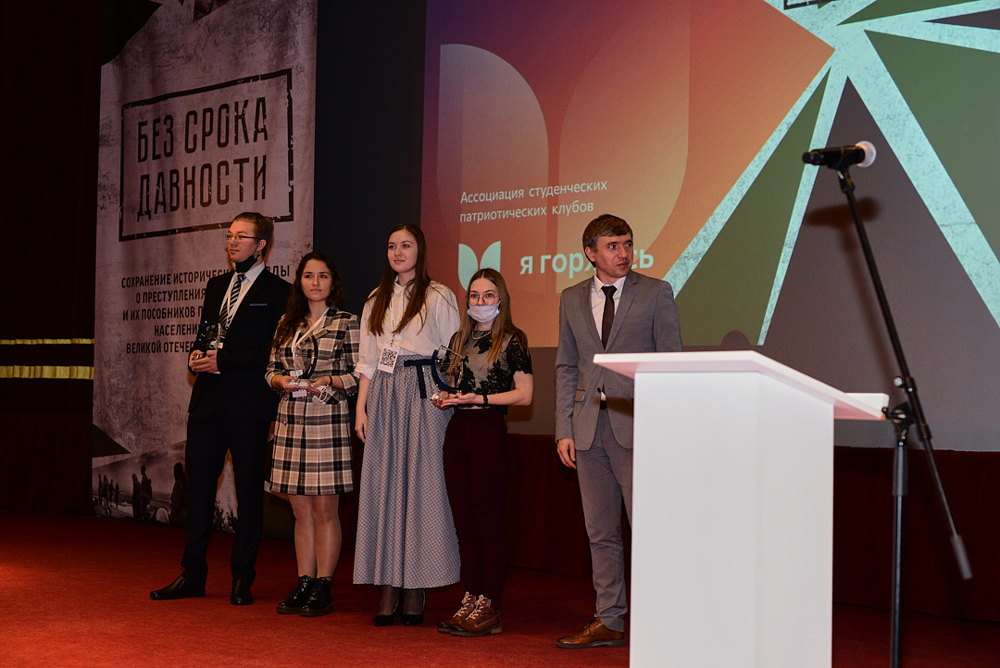 Киноконкурс «Без срока давности» организован Министерством науки и высшего образования Российской Федерации, Ассоциацией студенческих патриотических клубов «Я горжусь», Общероссийским общественным движением по увековечению памяти погибших при защите Отечества «Поисковое движение России». Всероссийский конкурс молодых литераторов и журналистов проходил в рамках федерального проекта «Патриотическое воспитание граждан Российской Федерации», национального проекта «Образование» при участии Ассоциации студенческих патриотических клубов «Я горжусь» совместно с Общероссийским общественным движением по увековечению памяти погибших при защите Отечества «Поисковое движение России».