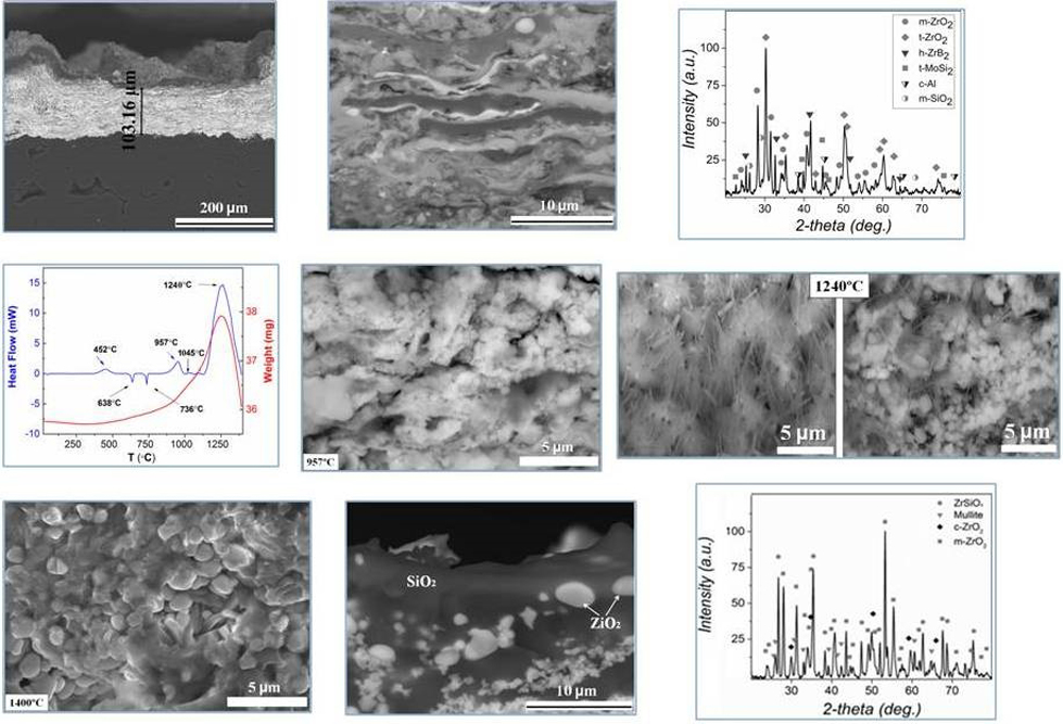 В ходе экспериментального исследования научному коллективу удалось получить путем газодинамического прессования смеси керамических и металлических порошков покрытия на основе ZrB2-MoSi2, которые могут быть использованы для защиты от окисления изделий из углерод-углеродных композиционных материалов, в том числе крупногабаритных, работающих при температурах выше 1600°С в условиях воздействия среды со значительным окислительным потенциалом.