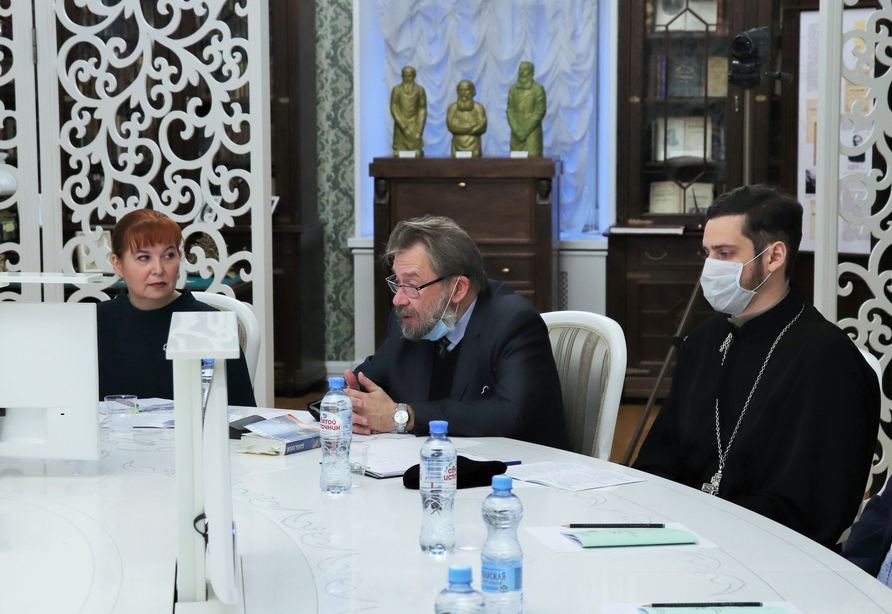 Руководитель МНИЦ «Интеллектуальная история России и региональные биографические исследования», профессор кафедры философии и теологии Павел Ольхов рассказал об истории создания храма-часовни Евгении Римской, библиотеки-музея Н.Н. Страхова и локации диссертационного совета, расположенных в месте проведения мероприятия. Павел Анатольевич пригласил участников круглого стола к сотрудничеству в рамках проекта медленного чтения великих книг, который реализуется в НИУ «БелГУ». Заведующий библиотекой-музеем Н.Н. Страхова Алексей Масалов провёл обзорную экскурсию для гостей университета по мемориальным залам и именным аудиториям исторического здания социально-теологического факультета.