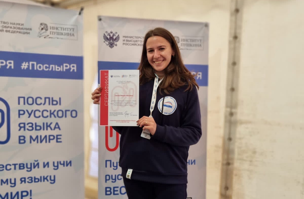 После заочного отборочного тура конкурсантка прошла очные испытания в составе первой группы претендентов на победу в рамках Северо-Кавказского молодёжного форума «Машук». В Пятигорске кандидаты в послы русского языка обучались у ведущих преподавателей Государственного института русского языка им. А.С. Пушкина, посетили мастер-классы от действующих послов и показали свои умения и навыки, выполняя различные задания организаторов отбора.