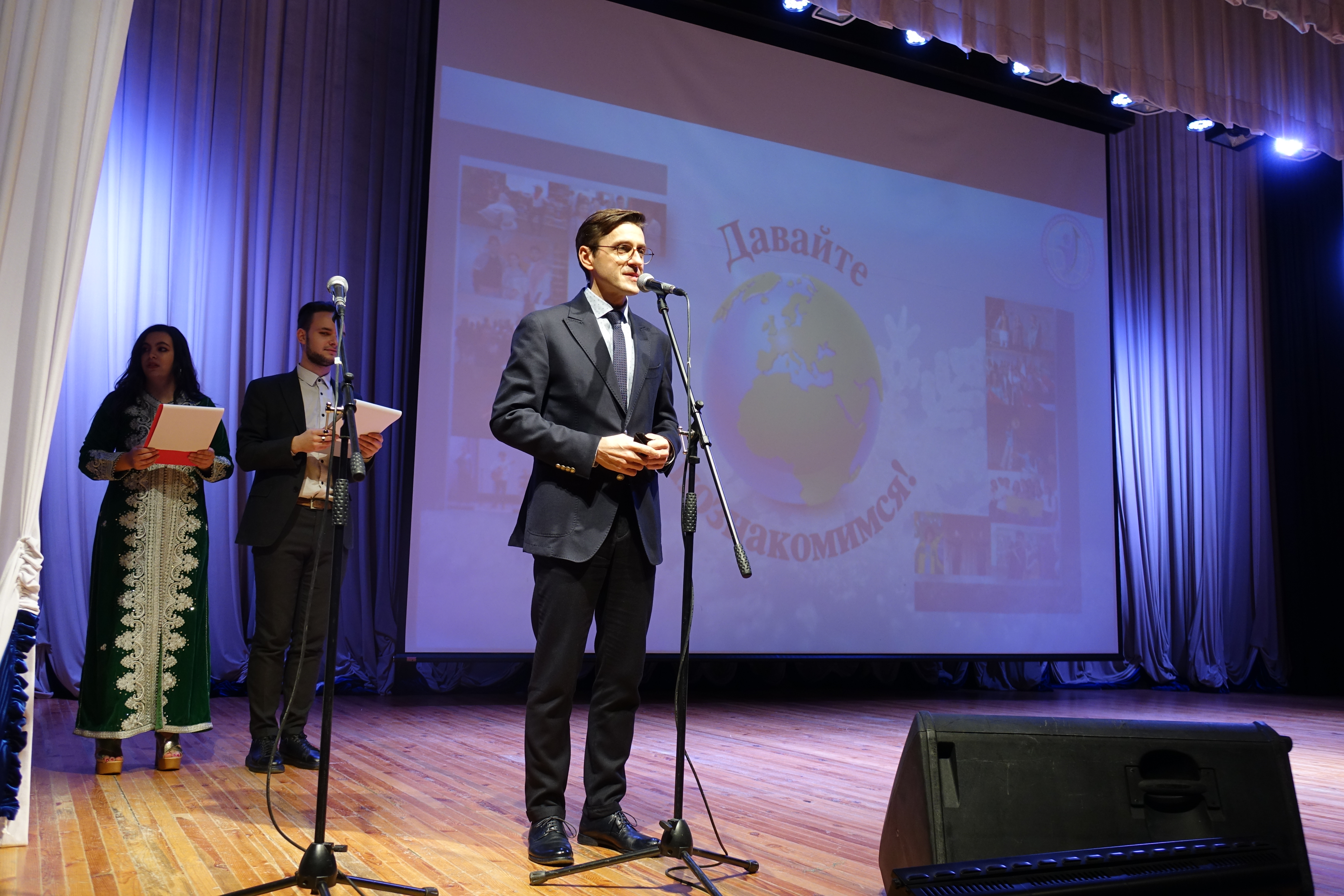 С приветственными словами ко всем собравшимся обратился проректор по международному сотрудничеству, руководитель подготовительного факультета Владислав Кучмистый. Он отметил, что мероприятие инициировано самими студентами и призвано сплотить иностранных студентов-слушателей подготовительного факультета, чтобы они как можно больше узнали друг о друге.