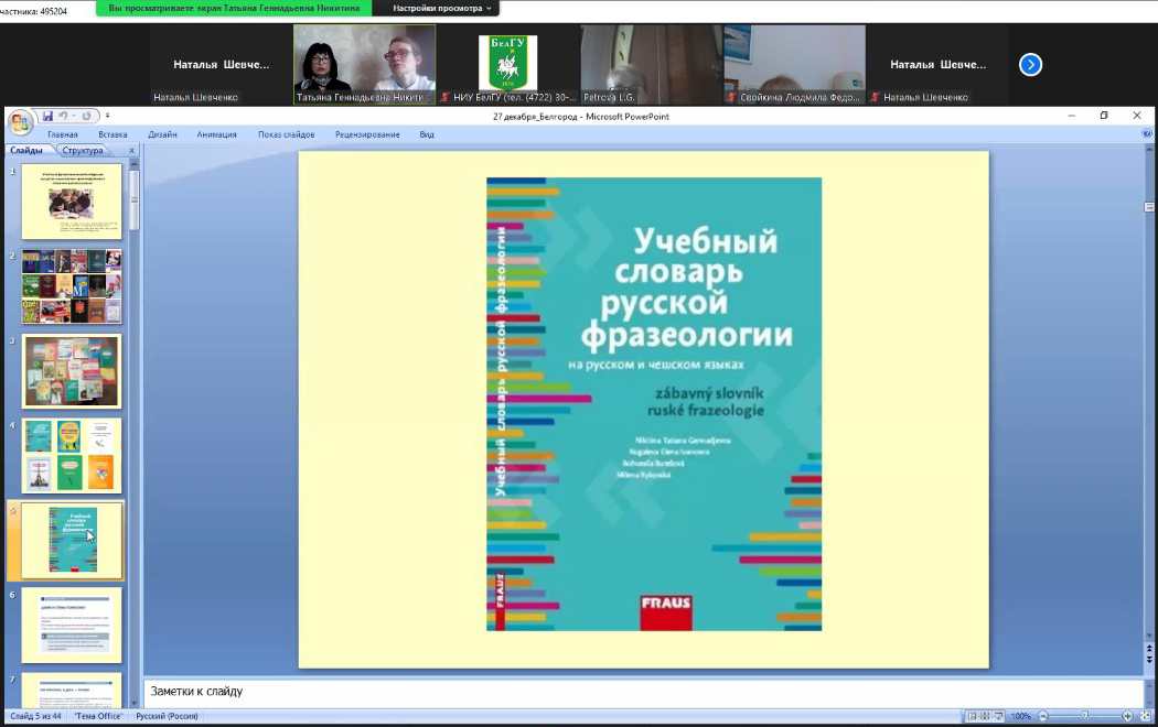 Заместитель директора института иностранных языков Китайского нефтяного университета, профессор Сунь Дамань рассказала об особенностях подготовки китайских специалистов в области русского языка в стенах вуза. Преподаватель колледжа Шарля III (Монако), кандидат педагогических наук Светлана Ларини посвятила своё выступление вопросам создания новых учебников по русскому языку для зарубежных стран. Большую заинтересованность участники семинара проявили к выступлению коллег из Псковского государственного университета. Профессора кафедры теории и методики начального и дошкольного образования Института образования и социальных наук Татьяна Никитина и Елена Рогалёва рассказали об опыте своей деятельности, обратившись к особенностям работы с учебным фразеологическим словарём как со средством национально-ориентированного обучения русскому языку.