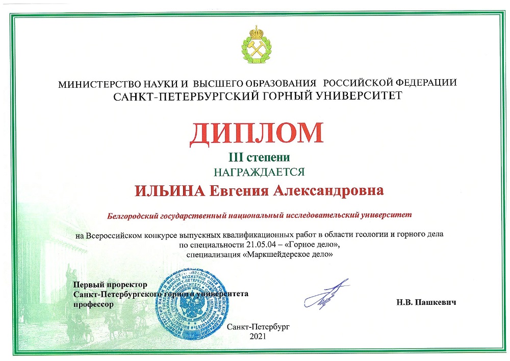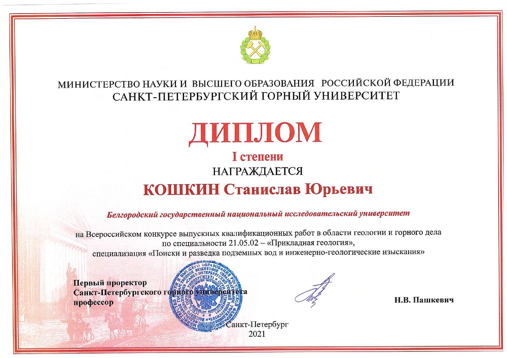 Выпускники НИУ «БелГУ» – победители Всероссийского конкурса выпускных квалификационных работ в области геологии и горного дела