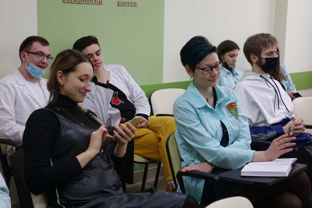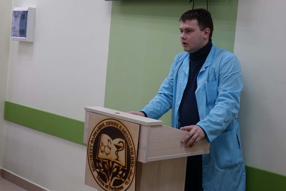 Команду студентов представили студенты первого курса ИФХиБ Виктория Матюхина и Игорь Тарасов, магистрант первого года обучения Иван Пронин, а также аспирант второго года обучения Владислав Сенченков.
