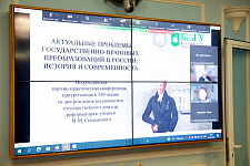 В зале диссертационного совета Белгородского госуниверситета состоялась Всероссийская научно-практическая конференция «Актуальные проблемы государственно-правовых преобразований в России: история и современность». Её организатором наряду с НИУ «БелГУ» выступил ордена Трудового Красного Знамени Институт государства и права Российской академии наук. Мероприятие прошло в смешанном формате, участие в нём приняли представители органов государственной власти, ведущие российские учёные, в том числе два члена-корреспондента РАН и 67 докторов наук, преподаватели и студенты вузов из 51 субъекта России, Республики Беларусь, Молдовы и ДНР.