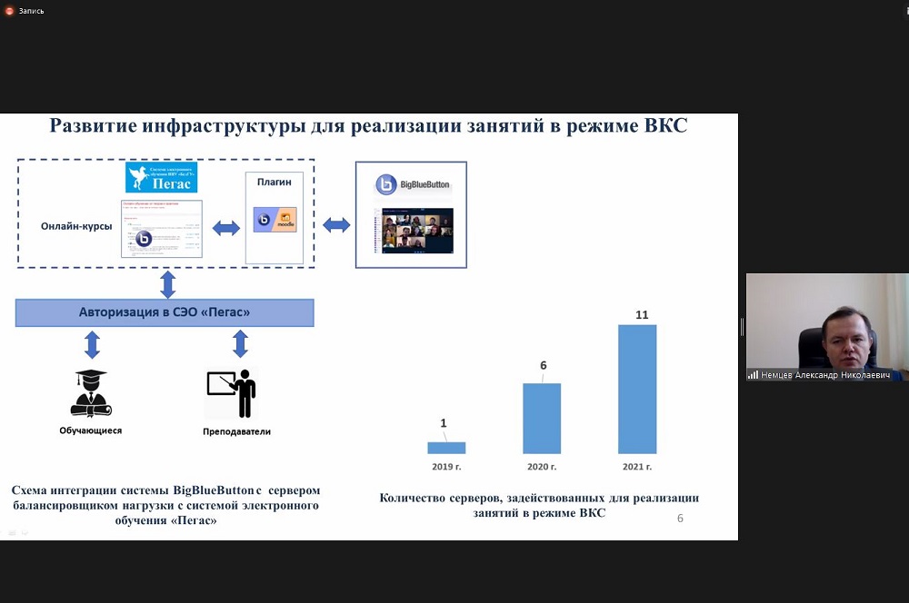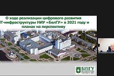 Итоги программы цифровизации вуза в 2021 году подвели на заседании учёного совета под председательством ректора НИУ «БелГУ», профессора Олега Полухина. Как отметил директор департамента образовательной политики Александр Немцев, цифровая трансформация осуществляется по четырём направлениям: цифровому развитию образовательной сферы, научно-инновационной деятельности, системы управления и развитию IT-инфраструктуры. К числу основных достижений прошлого года Александр Николаевич отнёс развитие инфраструктуры для проведения занятий в режиме ВКС, начиная с оборудования аудиторий мультимедийной техникой (129 – за год, в плане на 2022 г. – 100 аудиторий), заканчивая увеличением числа задействованных серверов (с шести в 2020 г. – до 11 в 2021 г.). Преподавателями вуза создано 302 онлайн-курса для системы электронного обучения «Пегас» (план на 2022 год – 340 онлайн-курсов). Разработаны новые электронные сервисы, позволяющие автоматизировать процессы учёта и контроля успеваемости обучающихся, назначения стипендий и др., а также дистанционно получить услуги многофункционального центра НИУ «БелГУ». Модернизирован сайт университета, обновлённую версию которого планируют запустить уже в феврале 2022 года.