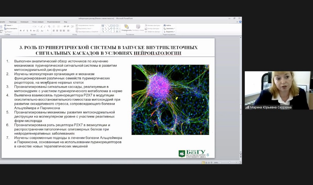 Исследования подразделений центра уже ориентированы на решение задач по созданию геннотерапевтических препаратов для лечения орфанных заболеваний. Так, в научно-исследовательской лаборатории «Клеточные, вспомогательные, репродуктивные и ДНК-технологии» под руководством доцента, кандидата биологических наук Сергея Надеждина апробирована методика химической трансфекции мезенхимных стволовых клеток для внедрения генетических конструкций. Большое теоретическое обобщение о роли пуринергической системы в запуске внутриклеточных сигнальных каскадов в условиях нейропатологии (ориентировано в том числе на лечение болезней Альцгеймера и Паркинсона) выполнено специалистами лаборатории клеточных культур под руководством завкафедрой биохимии медицинского института НИУ «БелГУ» Марины Скоркиной.