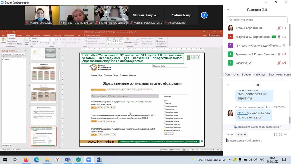 Особый интерес участников вызвали направления актуальных исследований инклюзивных социальных практик, а также привлечение студентов с ОВЗ к научно-исследовательской работе.