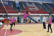 В УСК Светланы Хоркиной состоялся очередной вид спартакиады преподавателей и работников – по волейболу. Соревнования объединили шесть команд: педагогического института, института инженерных и цифровых технологий, института межкультурной коммуникации и международных отношений, юридического института, института экономики и управления и инжинирингового колледжа.