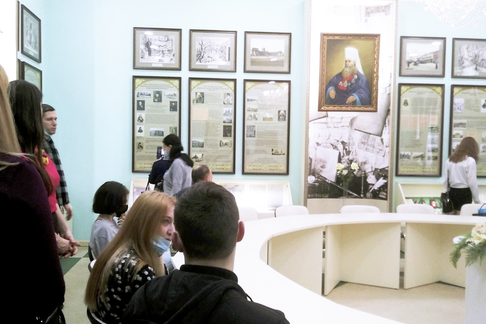 Заведующий отделом Научной библиотеки имени Н.Н. Страхова Алексей Масалов рассказал гостям университета об истории создания Духовно-просветительского центра имени митрополита Московского и Коломенского Макария (Булгакова), именной аудитории епископа Белгородского священномученика Никодима (Кононова), храма-часовни во имя святой преподобномученицы Евгении Римской и библиотеки-музея философа и публициста Николая Страхова.