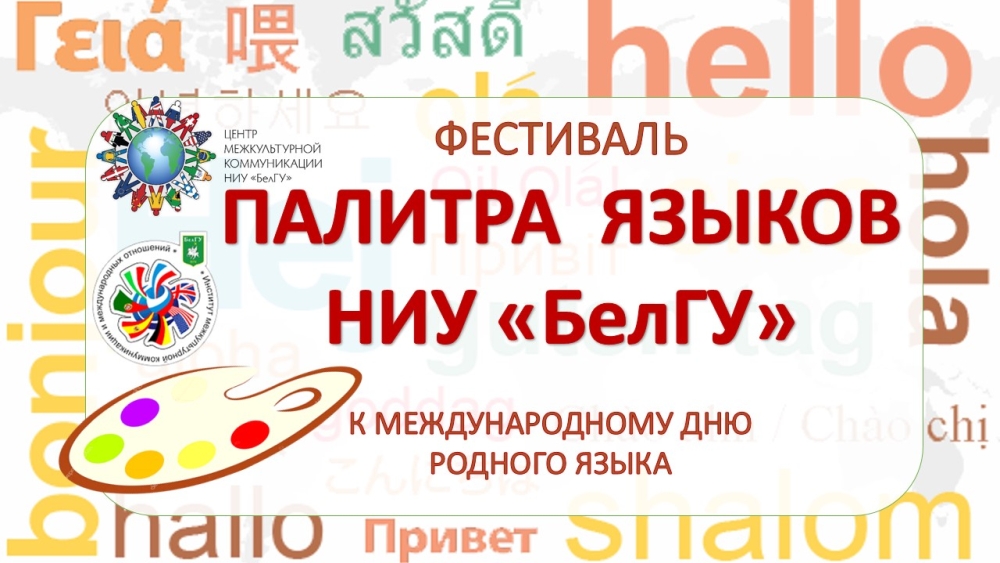 В университете на базе центра межкультурной коммуникации прошёл фестиваль «Палитра языков НИУ «БелГУ». Это ежегодное мероприятие, реализуемое в рамках Программы по продвижению русского языка за рубежом (2021–2025 гг.), приурочено к Международному дню родного языка. Фестиваль проводится по инициативе кафедры русского языка, профессионально-речевой и межкультурной коммуникации ИМКиМО, участие в нём принимают студенты и преподаватели всех институтов НИУ «БелГУ», обучающиеся вузов-партнёров, учителя и ученики школ Белгорода и Белгородской области.