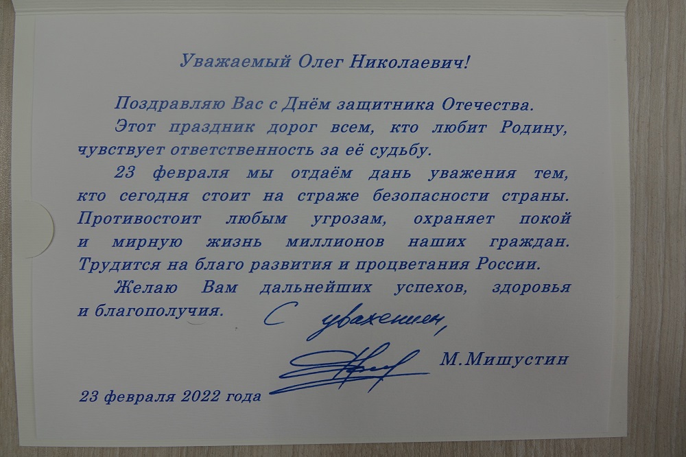 – 23 февраля мы отдаём дань уважения тем, кто сегодня стоит на страже безопасности страны, противостоит любым угрозам, охраняет покой и мирную жизнь миллионов наших граждан, трудится на благо развития и процветания России. Желаю дальнейших успехов, здоровья и благополучия, – говорится в тексте поздравления.